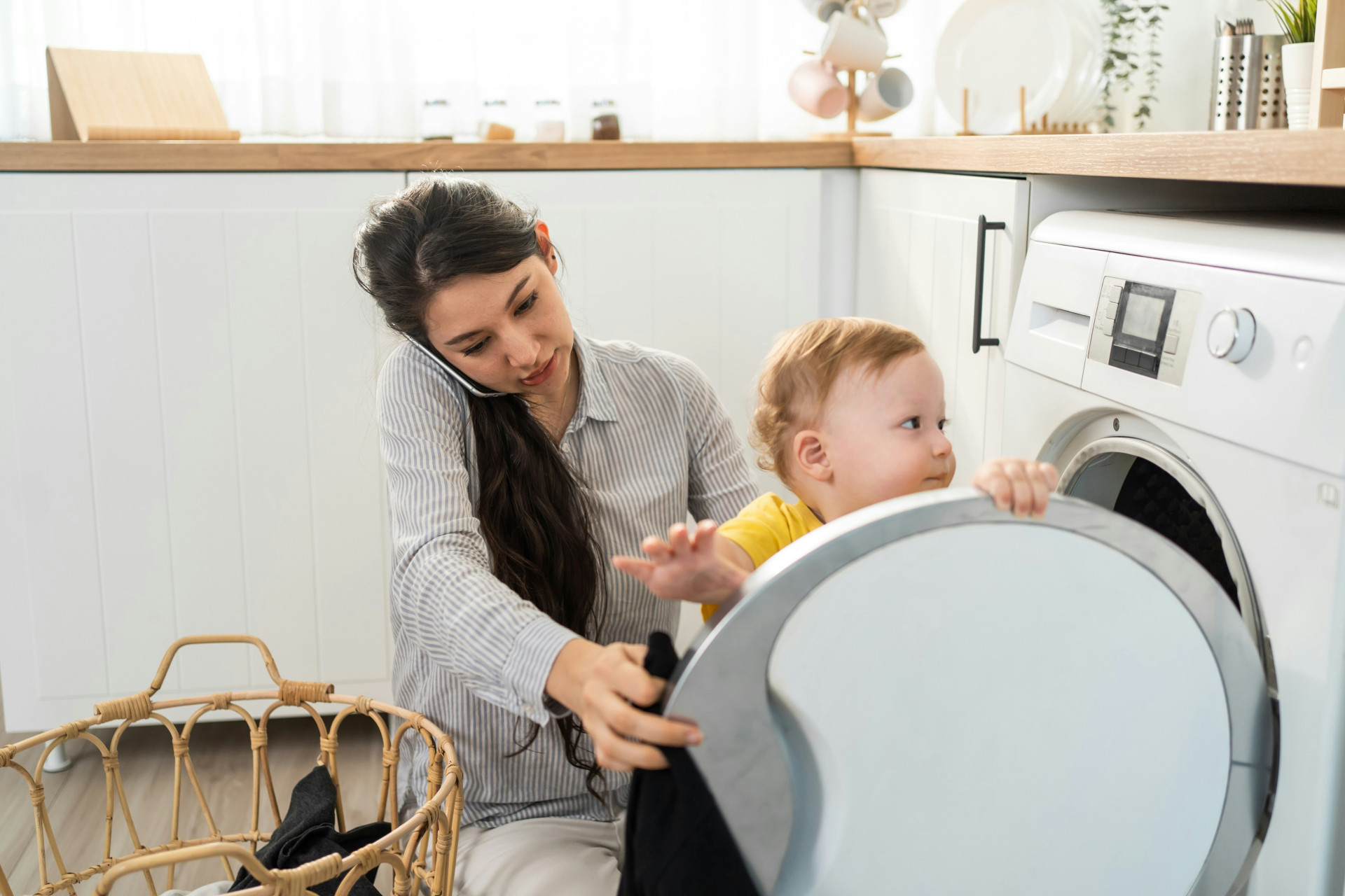 - Washing machines with delay start let you schedule laundry so it finishes when you’re ready for a break – not in the middle of a client call.